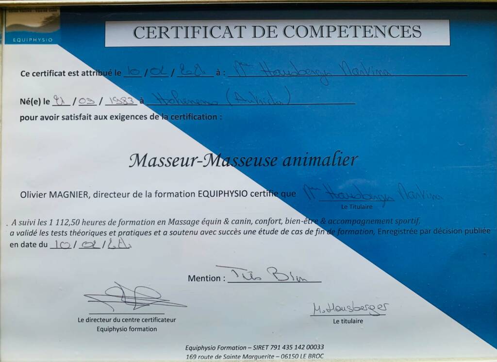 Masseuse équin & canin certifiée